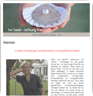 Hallo und herzlich willkommen auf meiner Homepage! Du bist genau richtig hier, um über obige Vorwürfe die Wahrheit zu erfahren. Mein Name ist Bernd Tittel, und ich bin seit dem Jahr 2000 "gefangen" in dieser herrlichen Sekte namens OCG. Ich kenne Ivo Sasek, den angeblichen Kinderprügler, Kinderschänder und hochgefährlichen Sektierer persönlich sehr gut. Ist es doch Ivo Sasek, der mich aus einem gesetzlichen, buchstabenabhängigen Christsein befreit hat.
