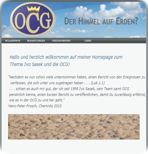"Nachdem es nun schon viele unternommen haben, einen Bericht von den Ereignissen zu verfassen, die sich unter uns zugetragen haben . . . (Luk.1.1) . . . schien es auch mir gut, der ich seit 1999 Ivo Sasek, sein Team samt OCG persönlich kenne, einen kurzen Bericht zu veröffentlichen, damit Du zuverlässig erfährst, wie es in der OCG zu und her geht."